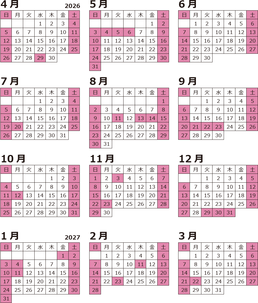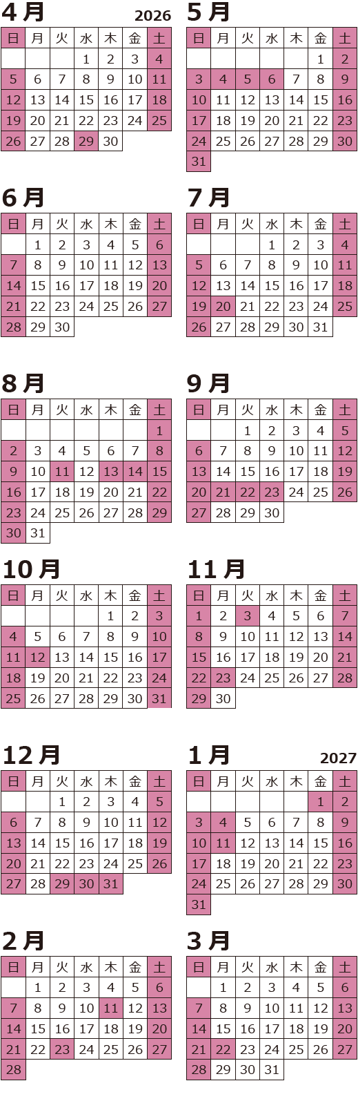 2026/2027 休日カレンダー